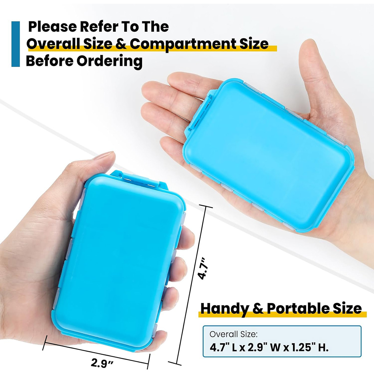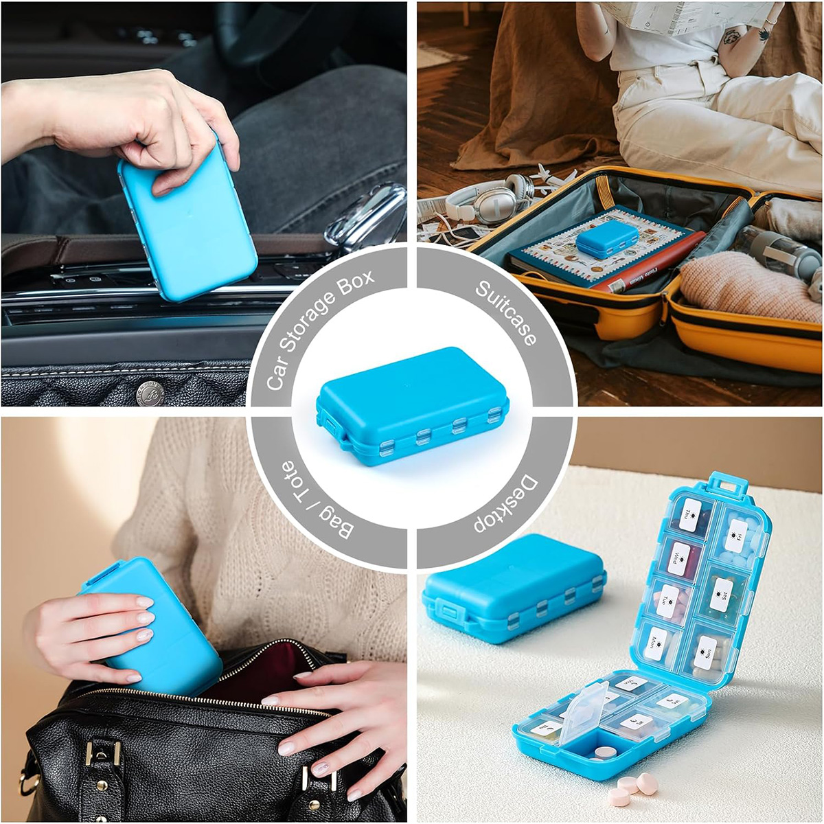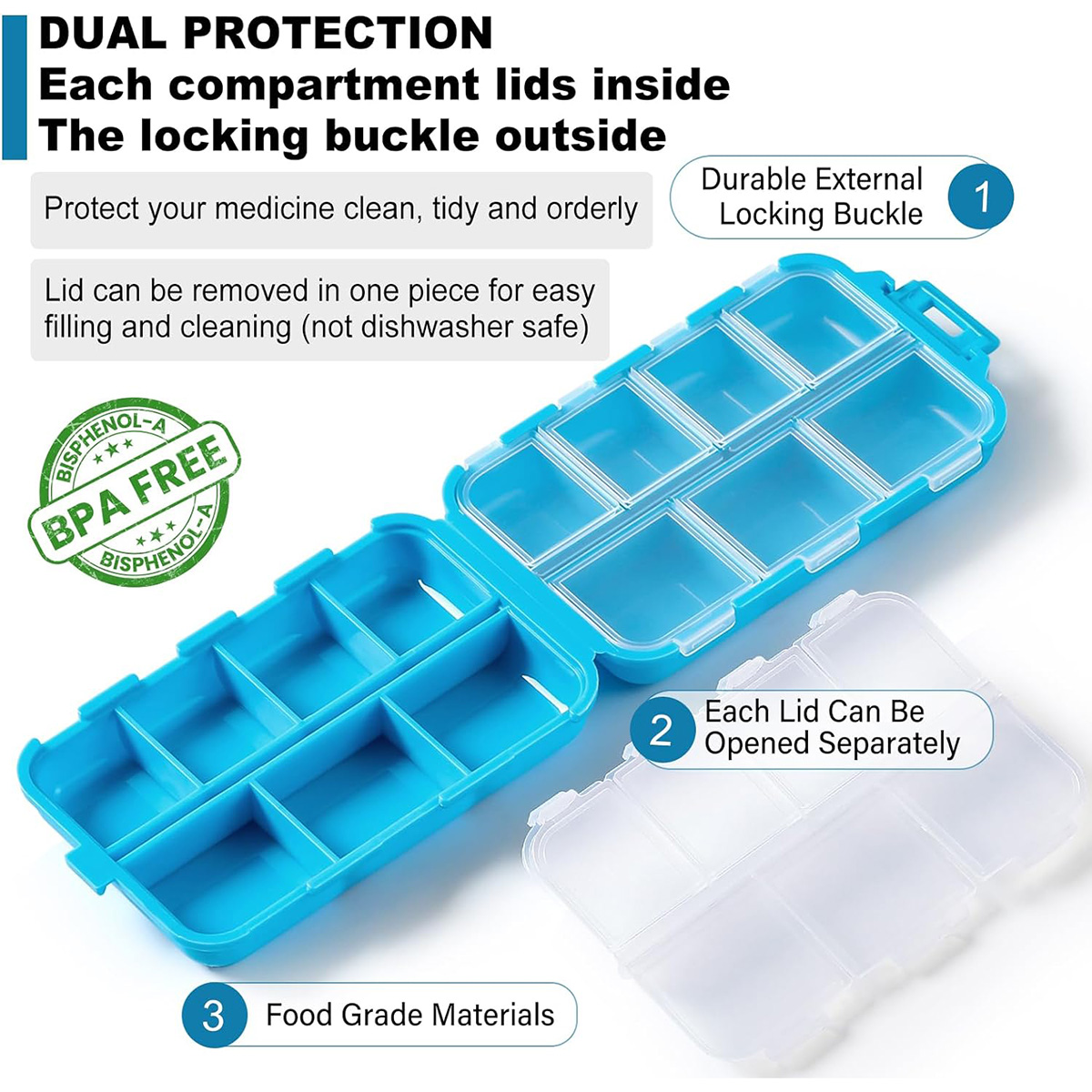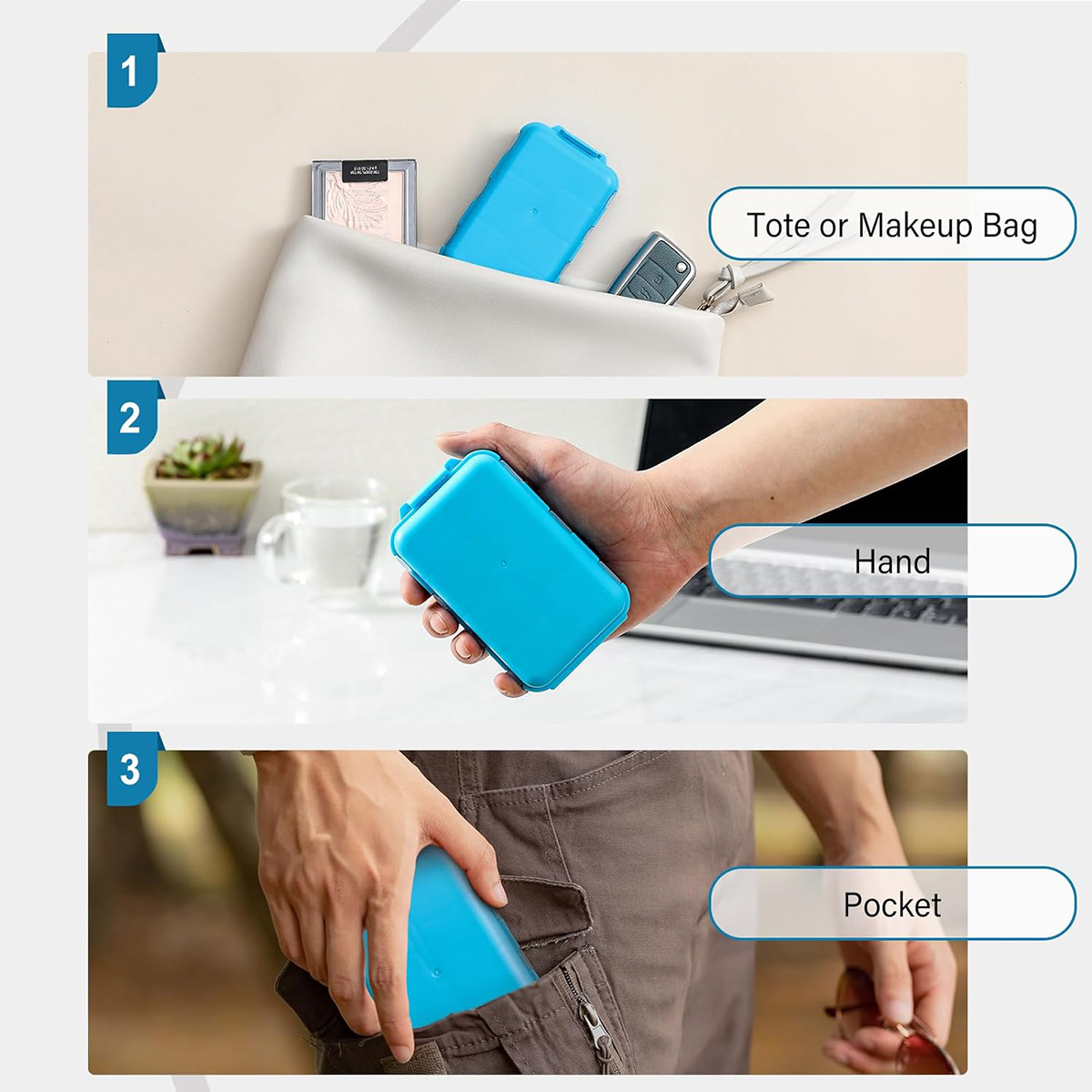 14 GRIDS Travel Pill Organizer Box with Labels – Travel Medicine Case Kit – Pocket Daily Pharmacy Container – Blue