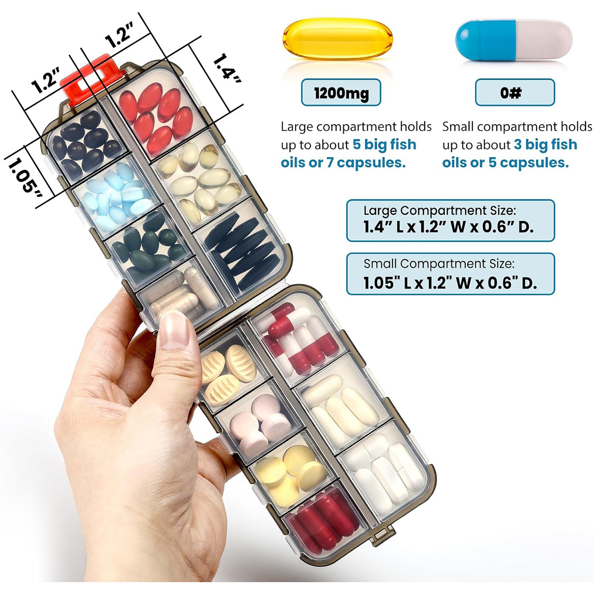 14 GRIDS Travel Pill Organizer Box with Labels – Travel Medicine Case Kit – Pocket Daily Pharmacy Container – Clear Gray