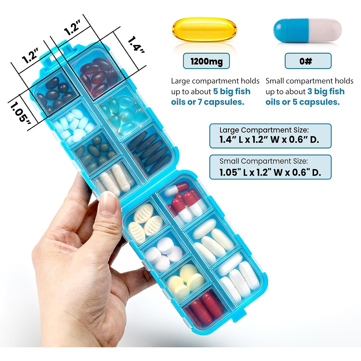 14 GRIDS Travel Pill Organizer Box with Labels – Travel Medicine Case Kit – Pocket Daily Pharmacy Container – Blue