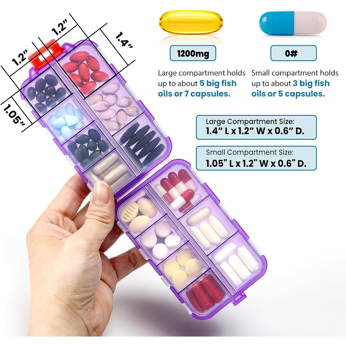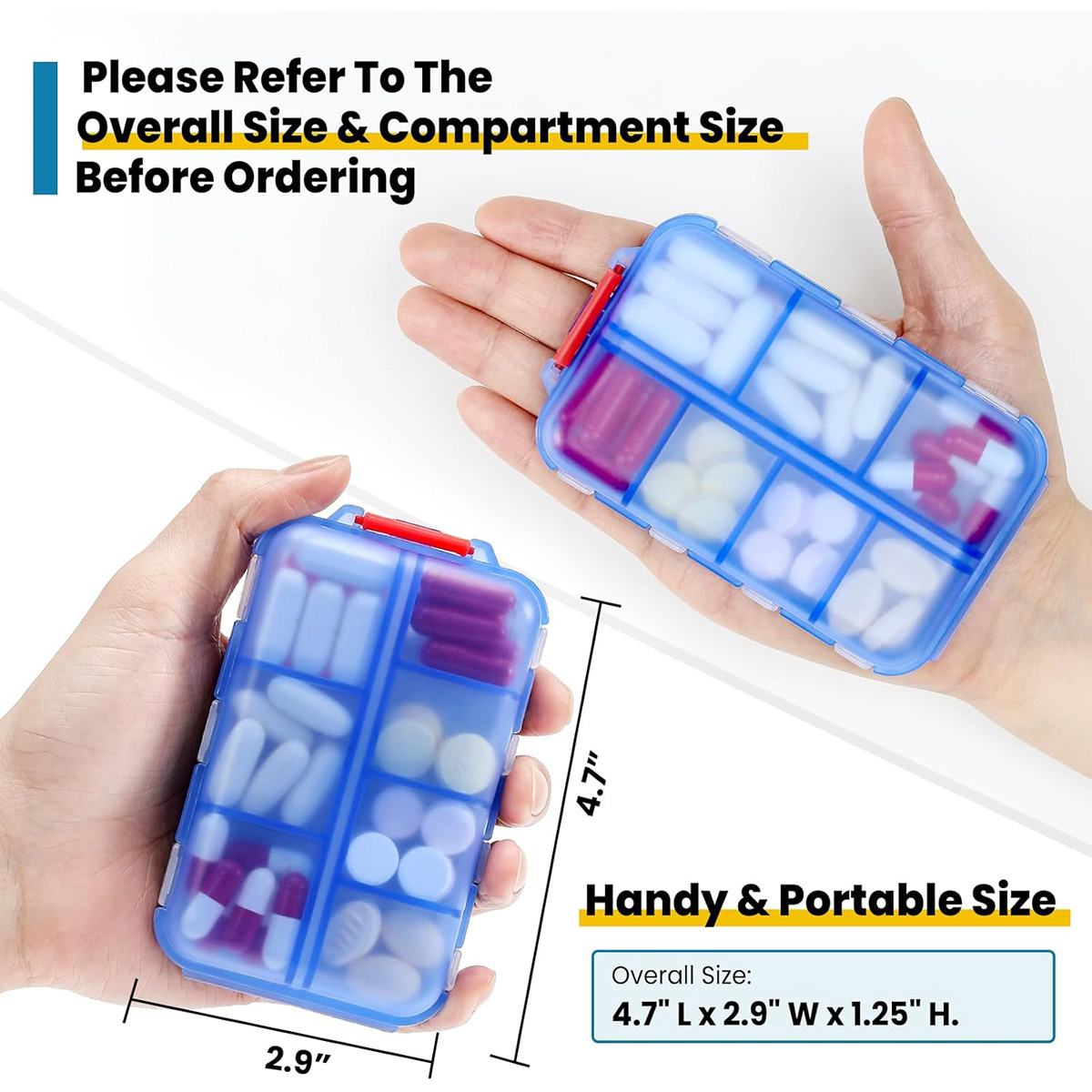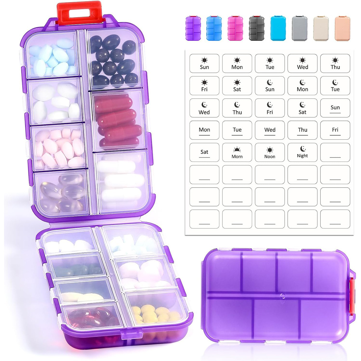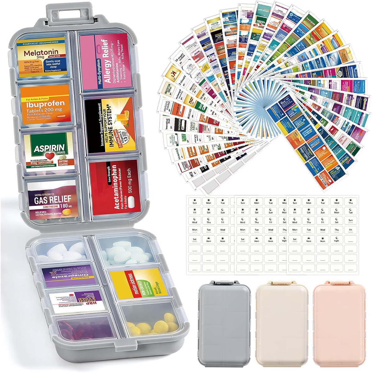 3 Pack 14 GRIDS Travel Pill Organizer Box with Labels – Travel Medicine Case Kit – Pocket Daily Pharmacy Container – Clear